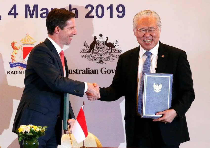 Indonesia dan Australia resmi menjalin kerja sama perjanjian dagang melalui Indonesia-Australia Comprehensive Economic Partnership Agreement (IA-CEPA), di Jakarta, Senin (4/3).